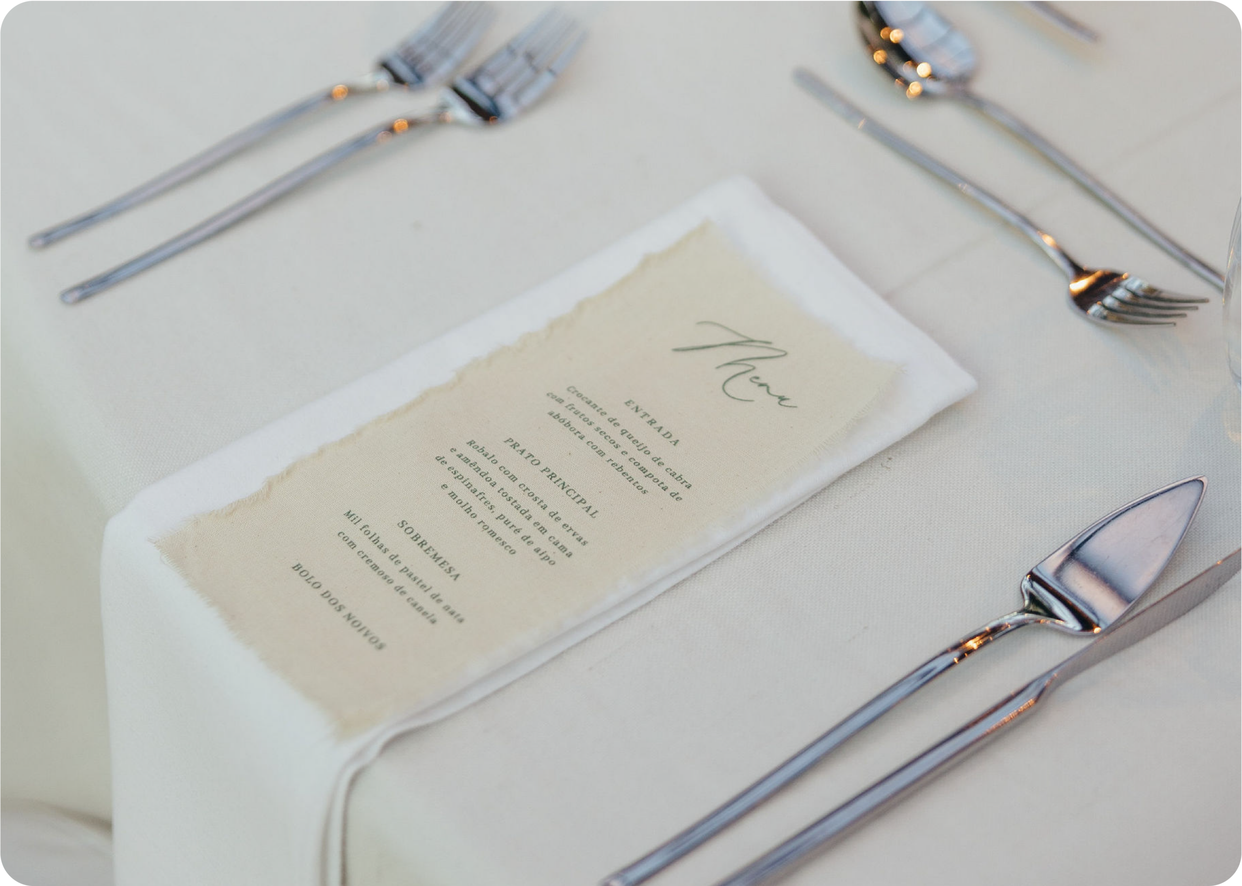 O estacionário em tecido ganha cada vez mais destaque em 2026, trazendo elegância, textura e um toque artesanal ao casamento. Menus, placas de boas-vinas ou seating-plan em tecido criam um ambiente acolhedor e sofisticado, sendo ideais para casamentos elegantes, boho ou com inspiração natural. Este tipo de estacionário reforça a atenção ao detalhe e a exclusividade do evento.