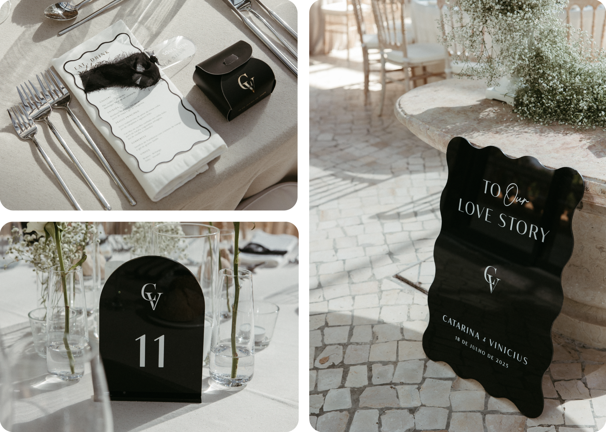 O estacionário com corte especial ganha protagonismo em 2026 pela sua originalidade e impacto visual. Convites, menus ou sinalética com formas personalizadas e cortes criativos elevam o design e tornam cada peça única. Esta tendência é ideal para casais que procuram algo fora do convencional e querem surpreender logo nos primeiros detalhes.