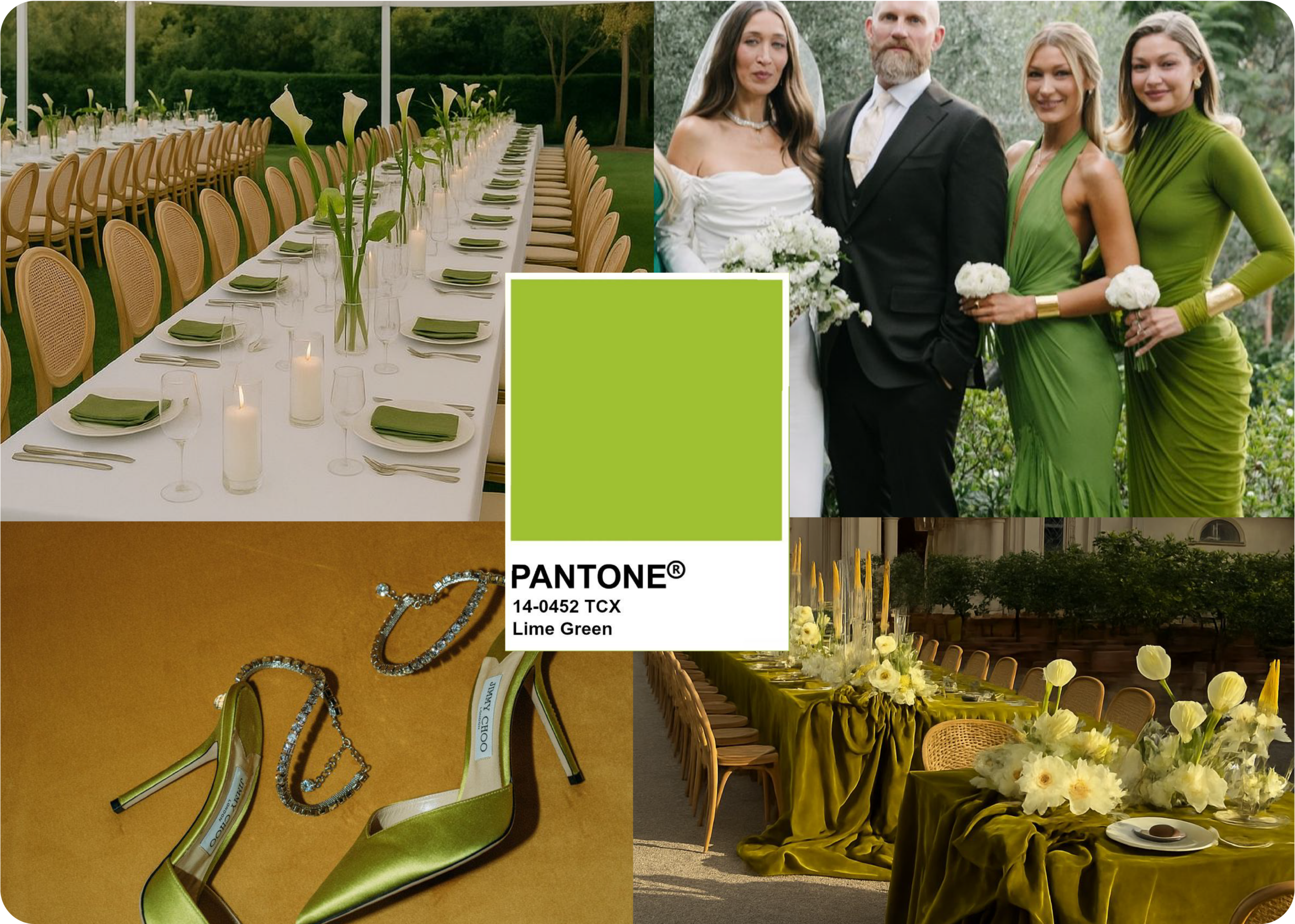 O Lime Green surge como uma das cores mais ousadas para 2026. Vibrante e cheia de energia, esta tonalidade traz frescura e originalidade aos convites de casamento.