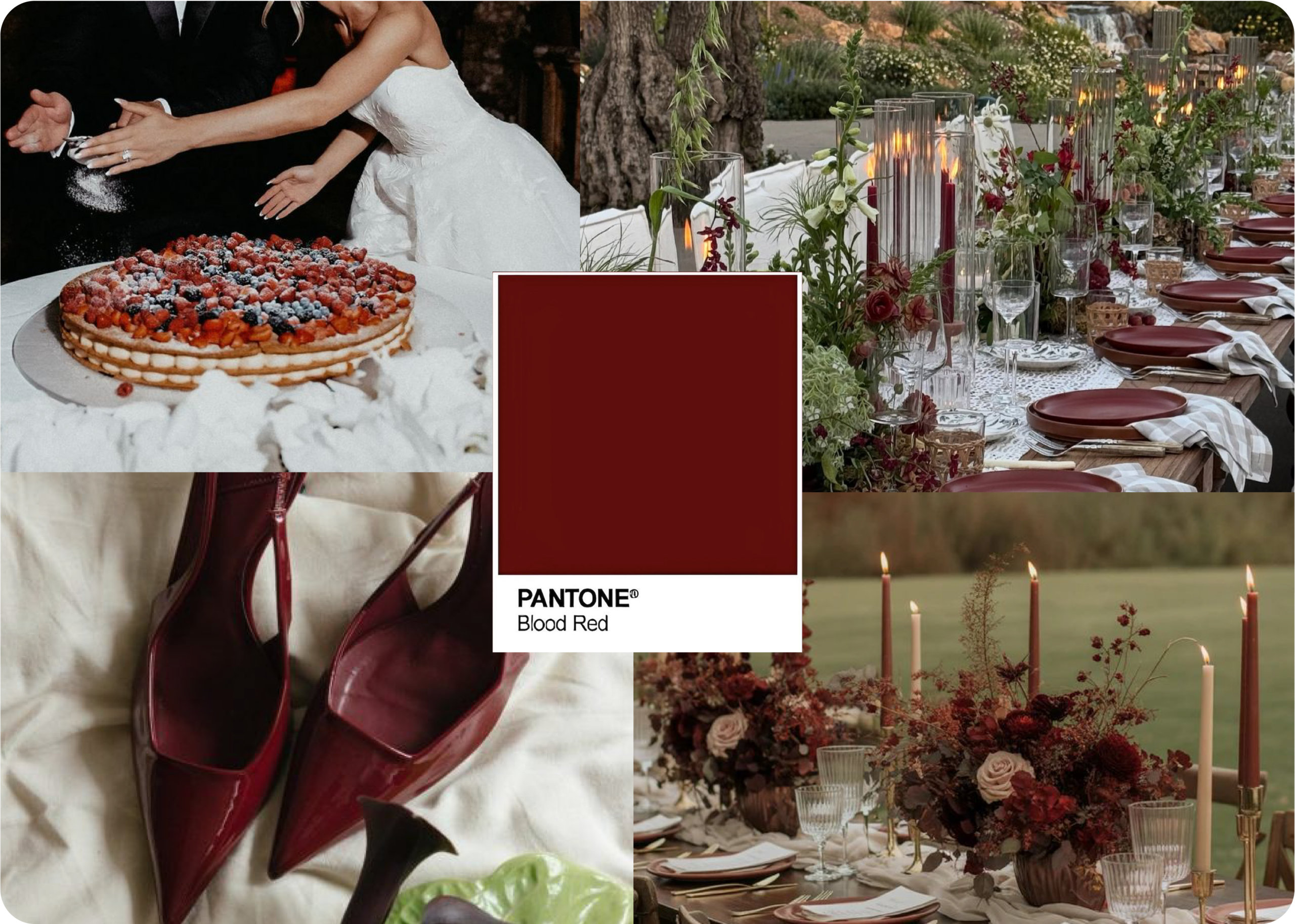O Blood Red representa paixão, intensidade e luxo. Em 2026, esta cor surge como tendência para casais que querem convites marcantes e cheios de personalidade.