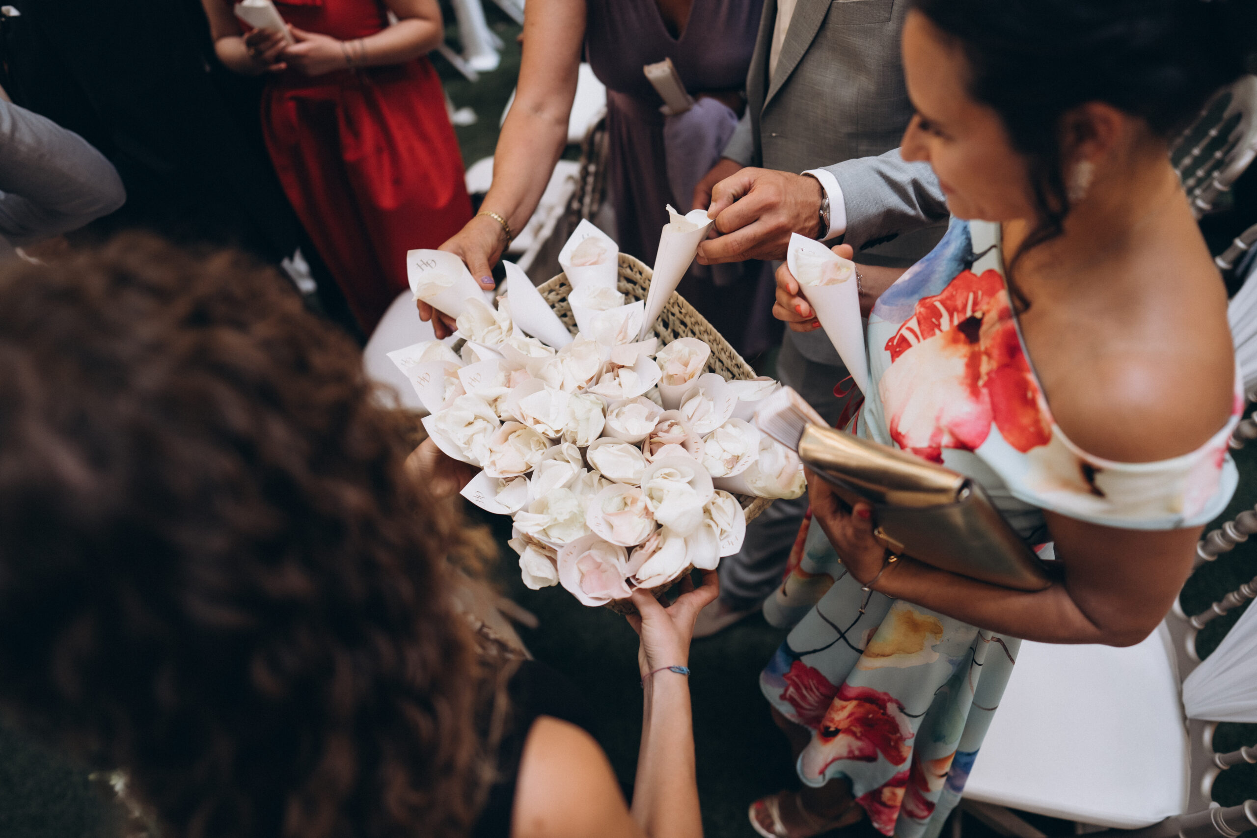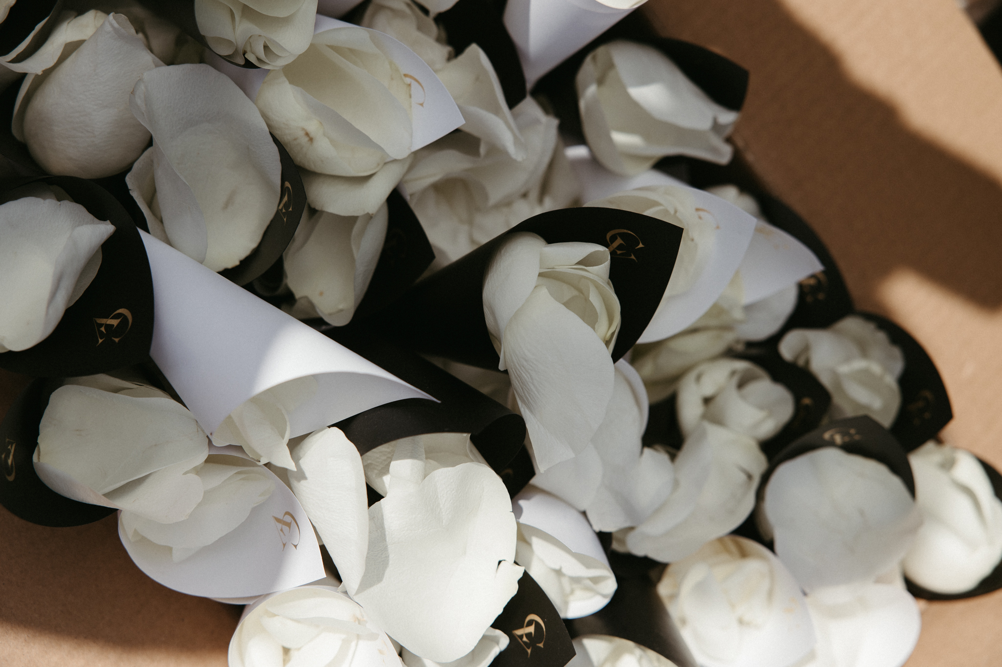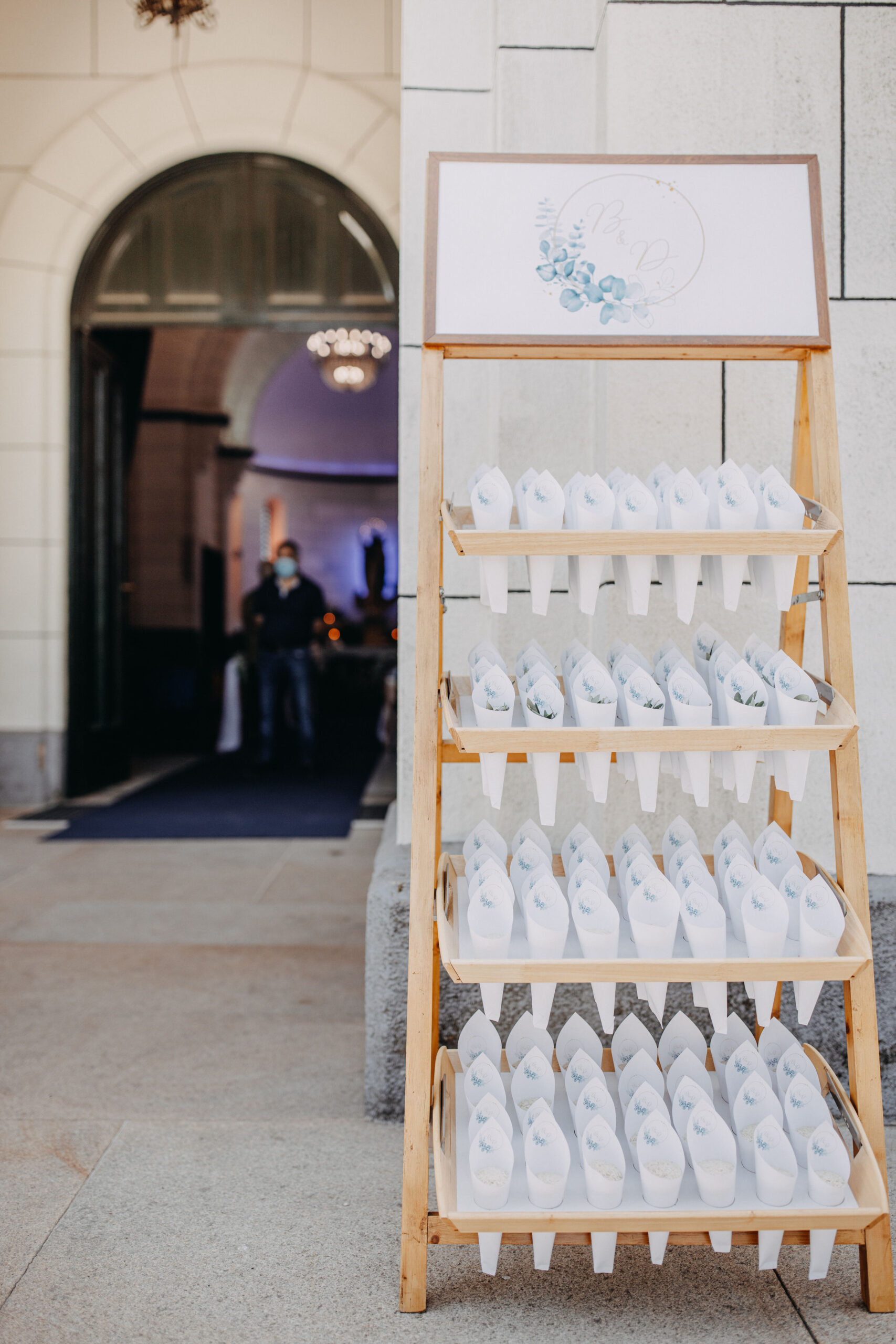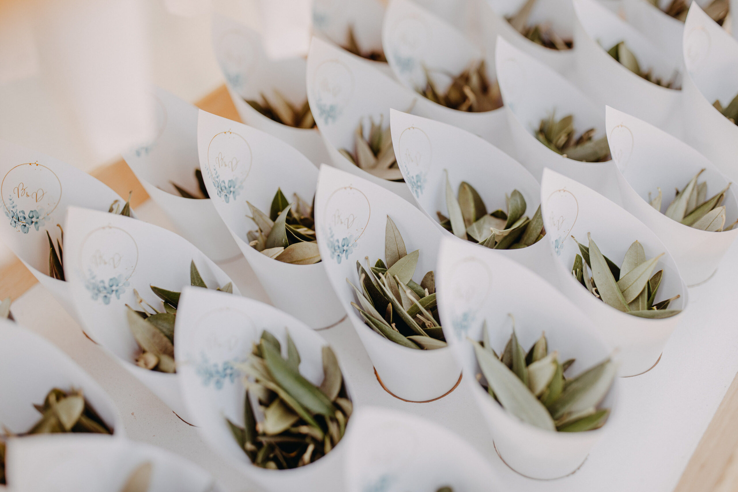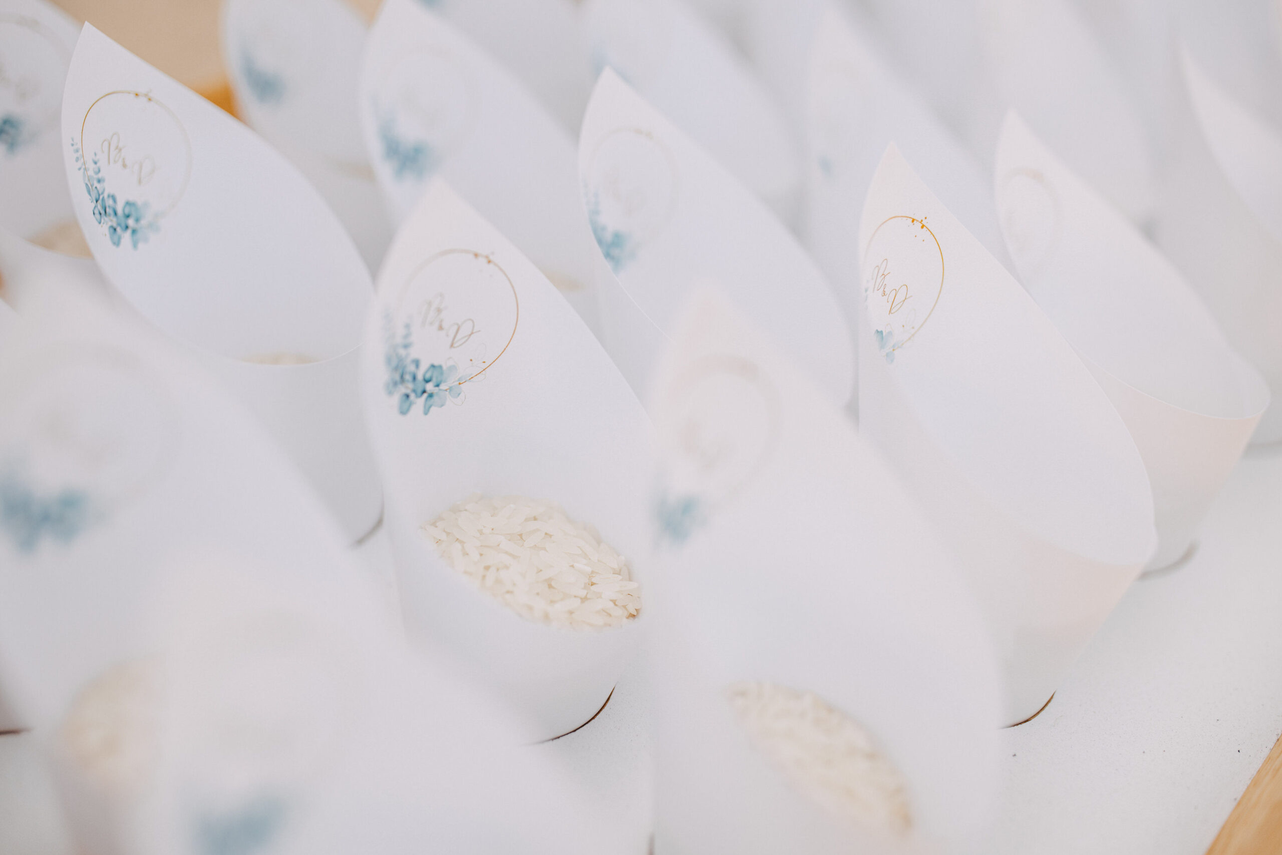 Cada cone é cuidadosamente criado para combinar com o estilo e a paleta de cores do vosso casamento, tornando-se um elemento decorativo que harmoniza com toda a identidade visual do evento.