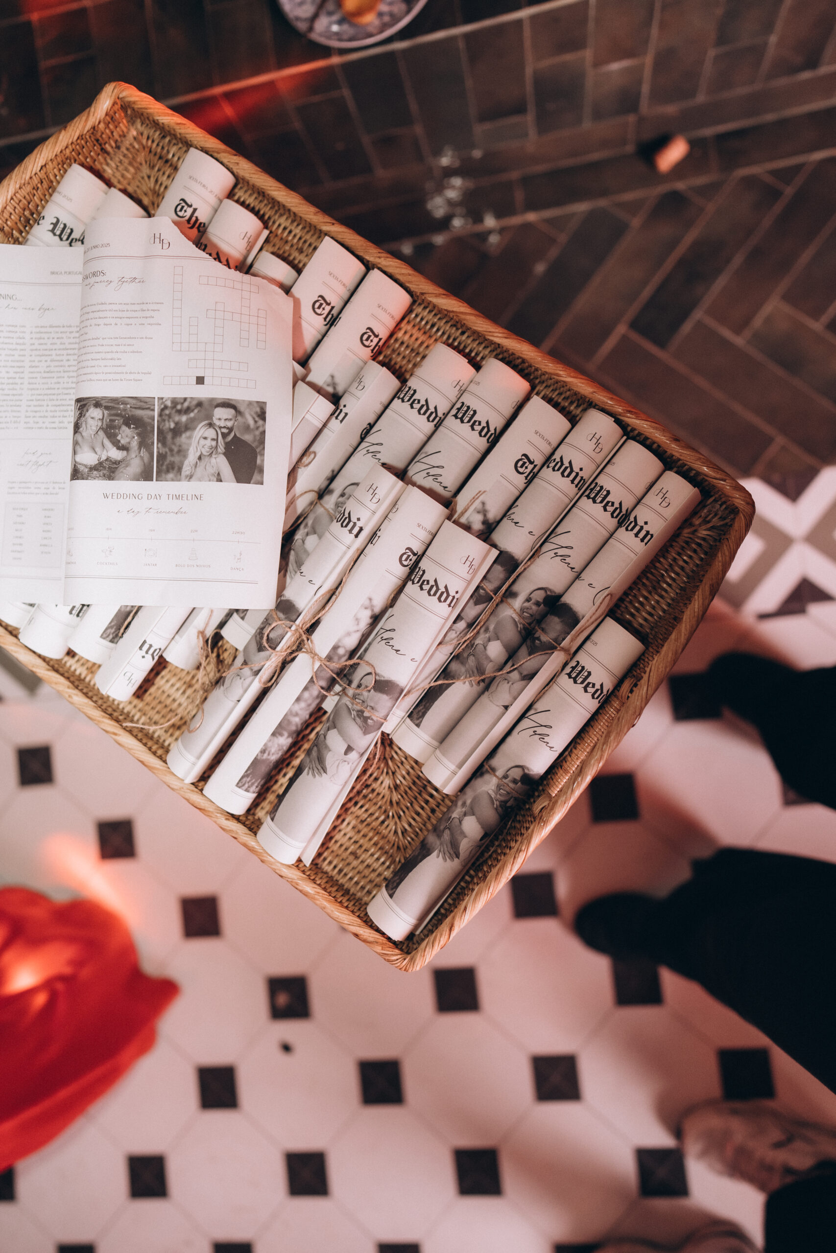 Na nossa marca de estacionário de casamento personalizado, cada detalhe é pensado com amor e dedicação. Criamos jornais de casamento originais, adaptados ao conceito do vosso casamento — seja ele clássico, moderno, boho ou rústico. Um toque de romantismo e criatividade que torna o vosso grande dia ainda mais autêntico e memorável.