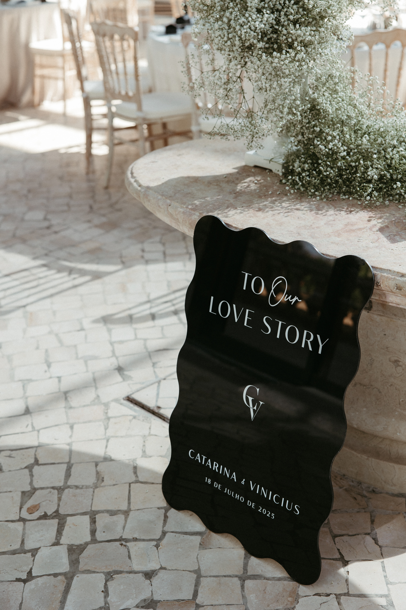 As nossas Placas de Boas-Vindas são a forma perfeita de começar o seu evento especial. Criadas com atenção aos detalhes e personalizadas ao seu gosto, estas placas encantadoras dão aos seus convidados uma receção calorosa e elegante, refletindo a beleza e a importância do seu dia especial.