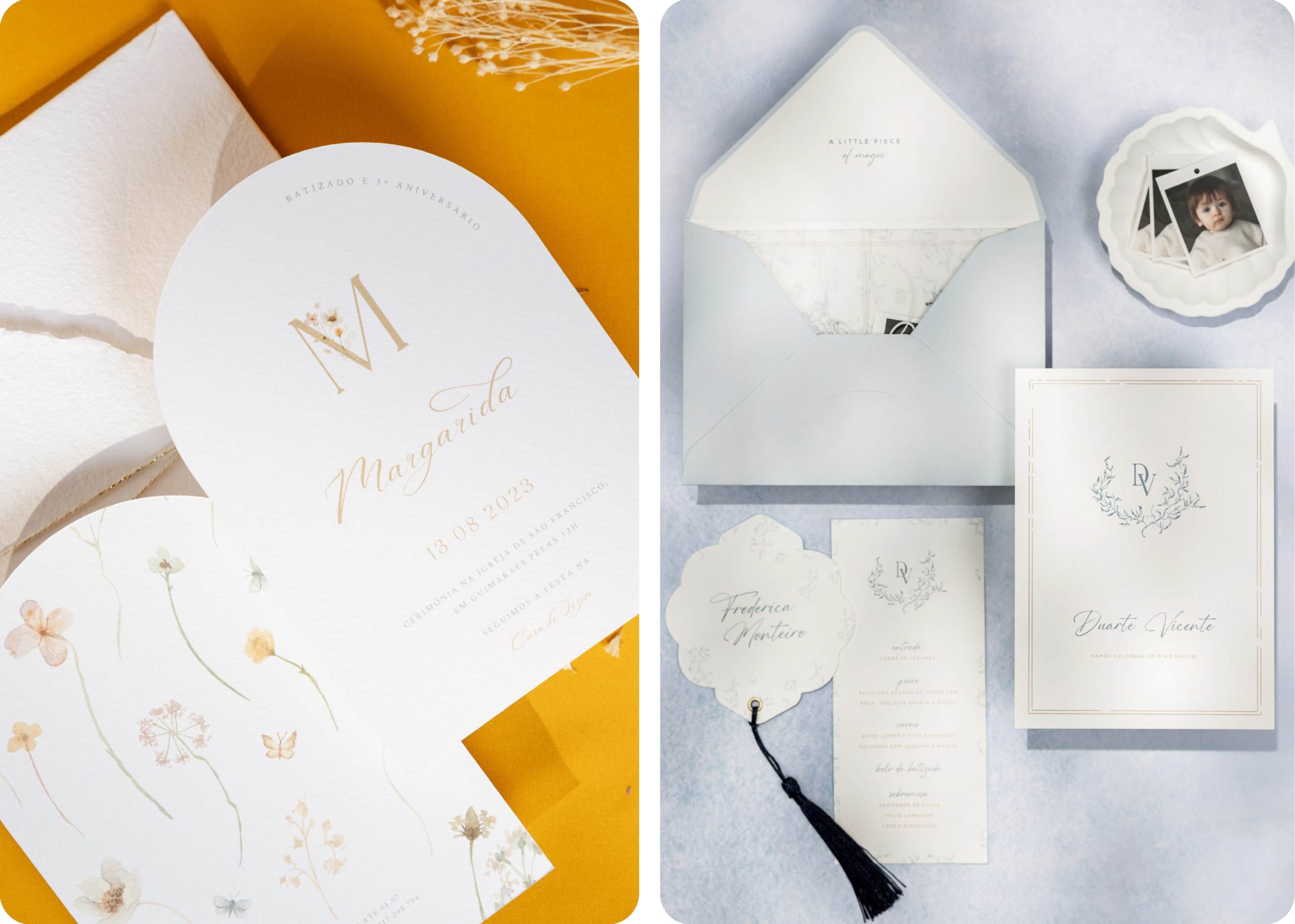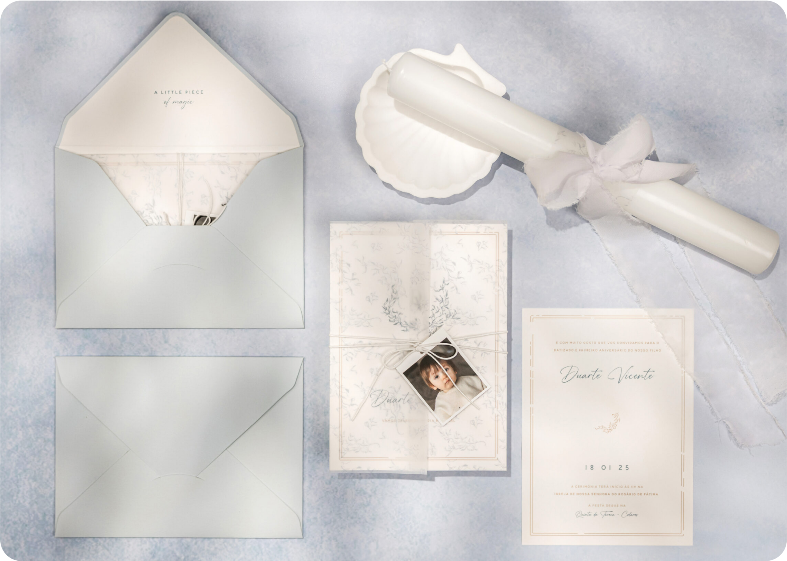 Na Pergaminho Design, somos especialistas em convites e peças de estacionário para batizados e casamentos. Criamos convites exclusivos, que combinam sofisticação, delicadeza e personalidade, tornando cada momento inesquecível.