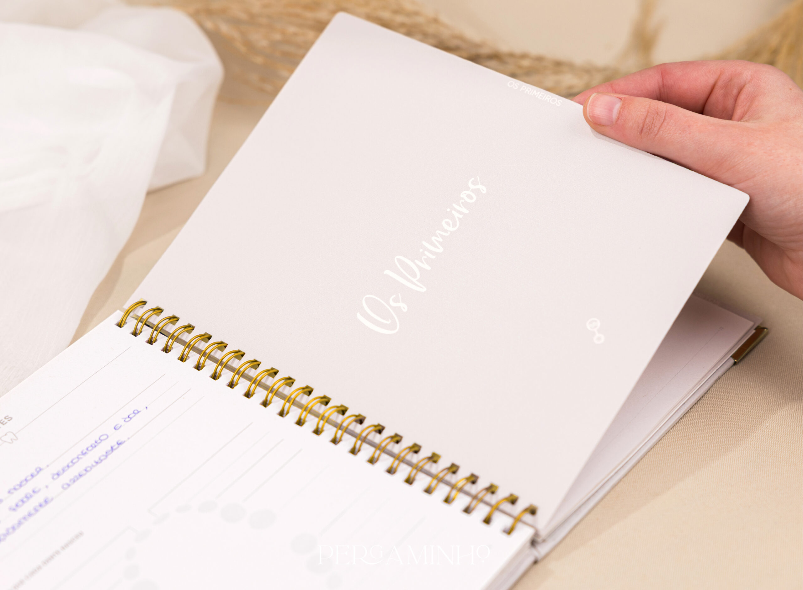 Procura onde registar os momentos mais importantes do seu bebé? O meu Diário do Bebé oferece um espaço dedicado para documentar cada etapa do crescimento do seu filho, desde os primeiros dias até aos momentos de orgulho e alegria. Pronto para começar a registar as aventuras do seu bebé? O meu Diário do Bebé da Pergaminho Design é ideal para começar a criar memórias para toda a vida. Esta é uma agenda com capa dura e toque suave, com encadernação em argolas douradas. Ela oferece diversas funcionalidades, incluindo uma seção para anotar ideias, favoritos e momentos importantes.